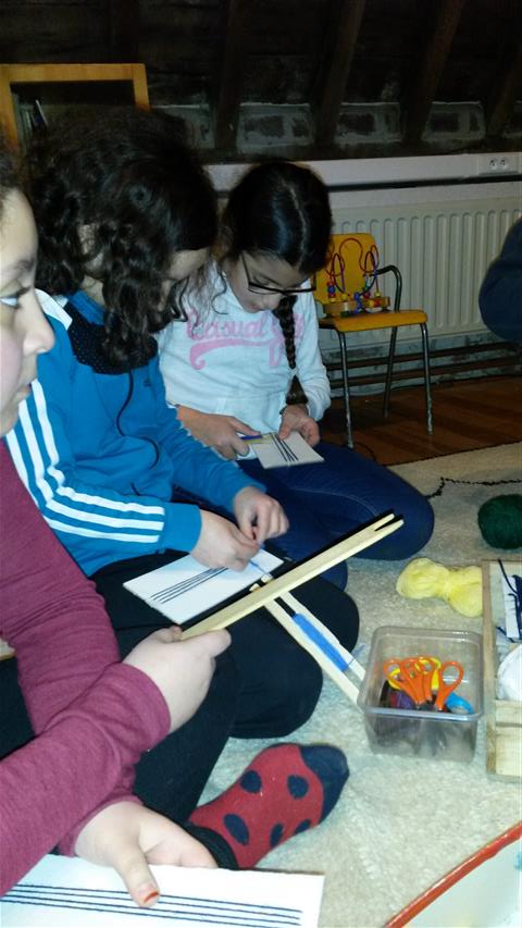 Na de middag gingen we op de zolder om te knutselen. We maakten een armbandje uit wol.